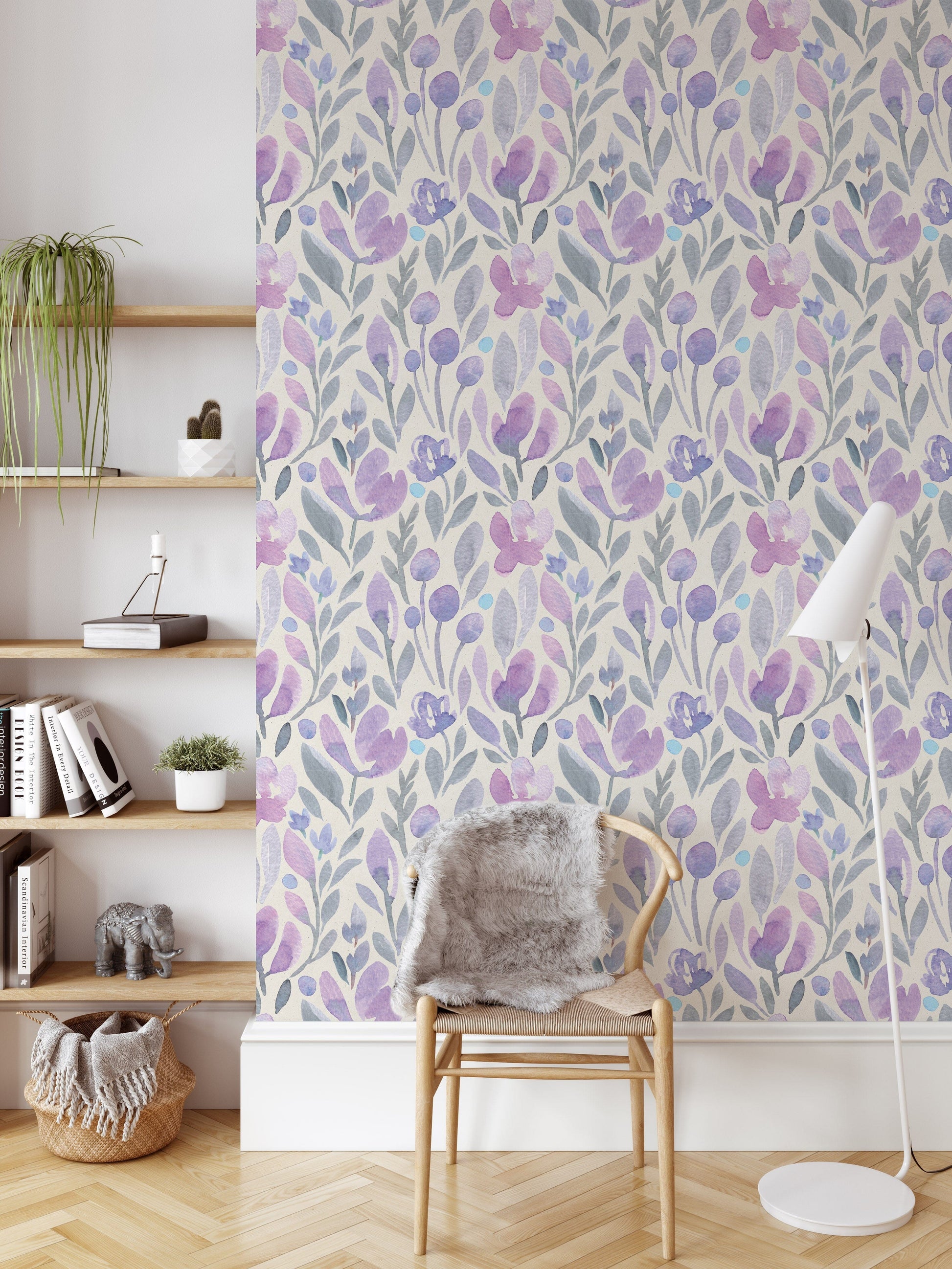 Transform any space with Purple Botanical Watercolor Floral Wallpaper Peel and Stick. This wallpaper is easy to apply and remove, making it the perfect choice for a girl's room. The vibrant colors will give any space a unique, personalized look.